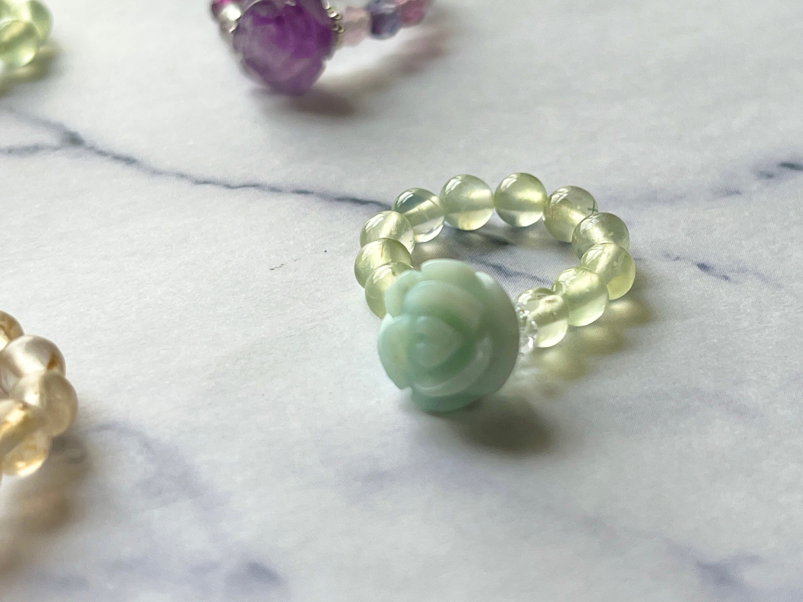 アマゾナイトの薔薇と翡翠のリングです。