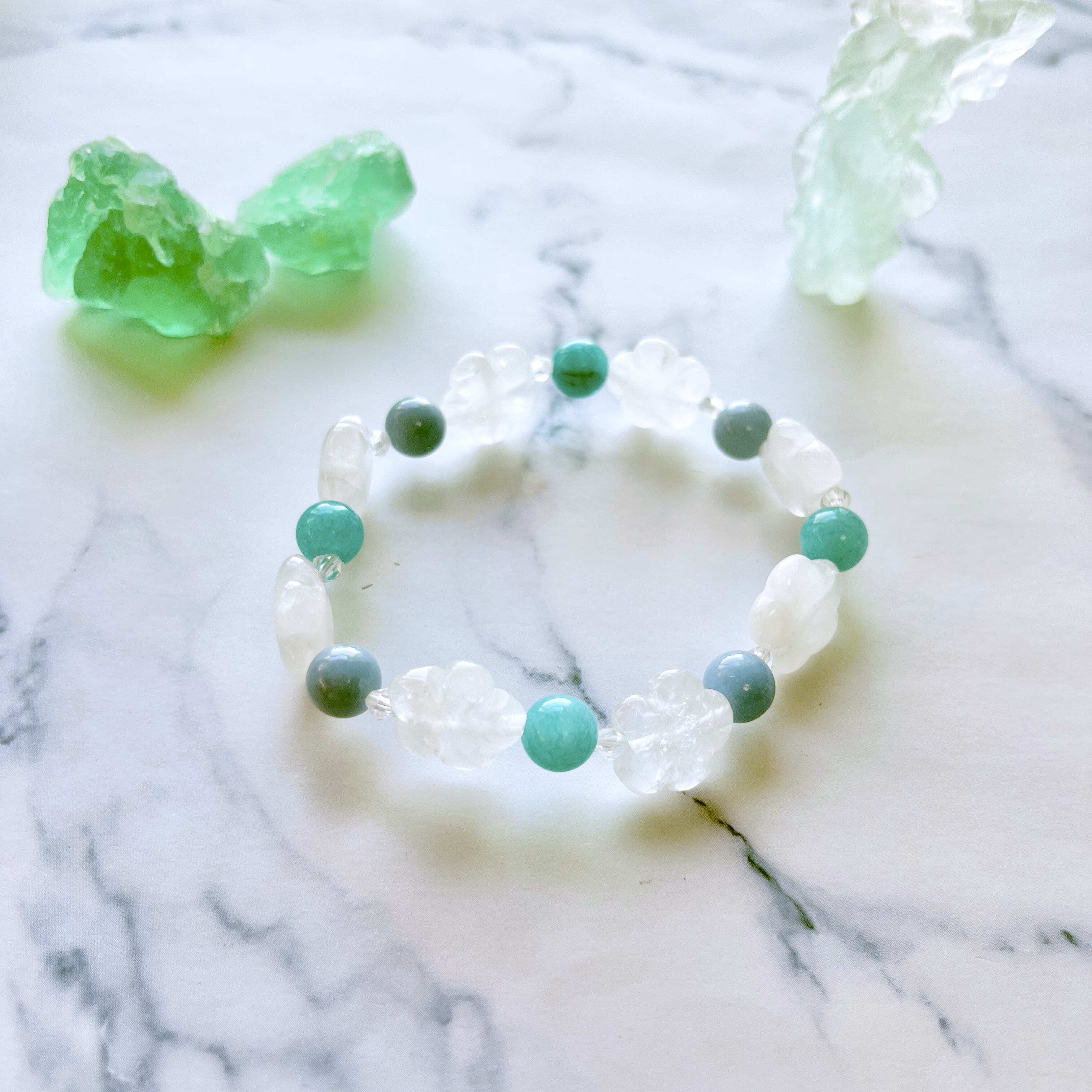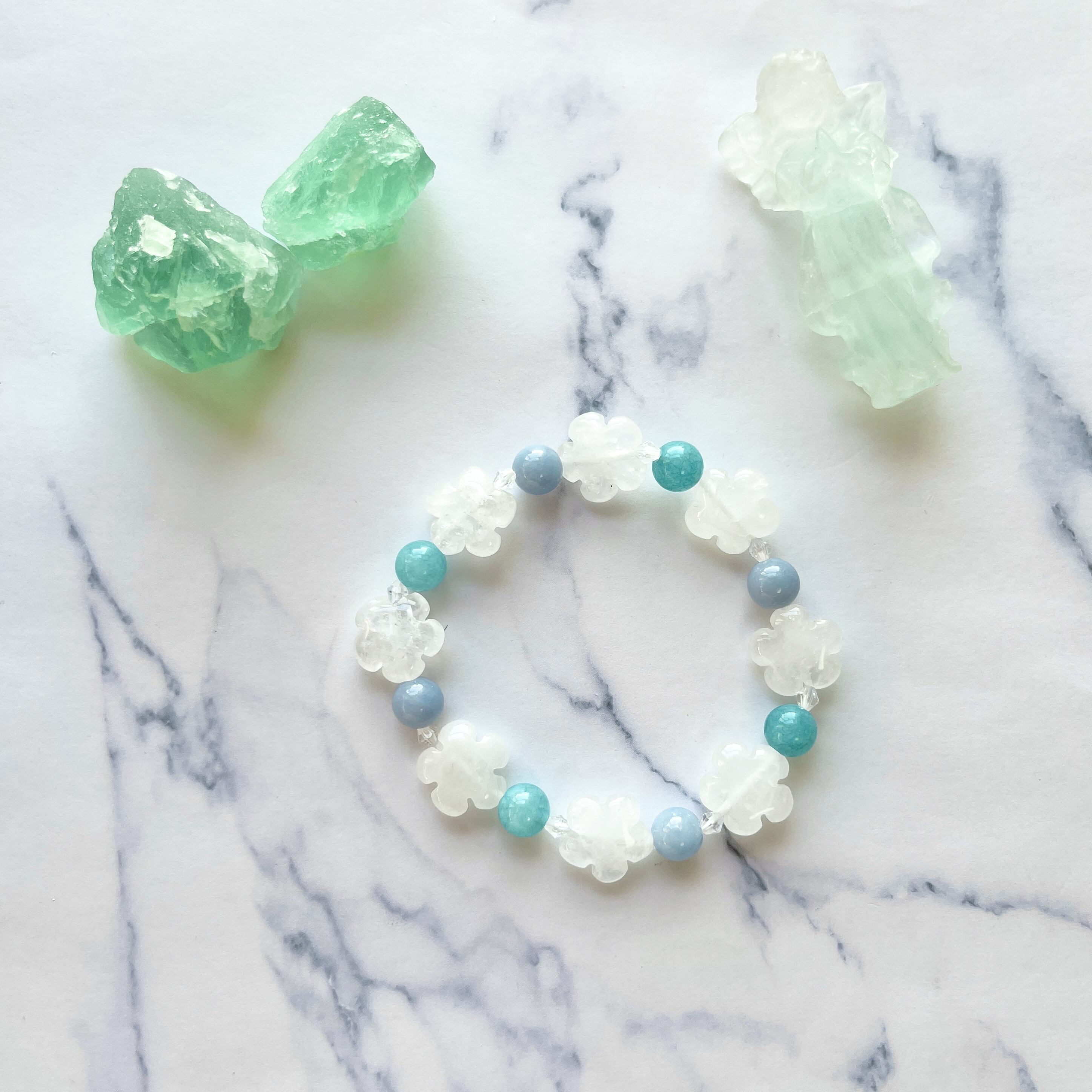 クォーツとエンジェライトのお花ブレスレット【エンジェライト】ABA-0001